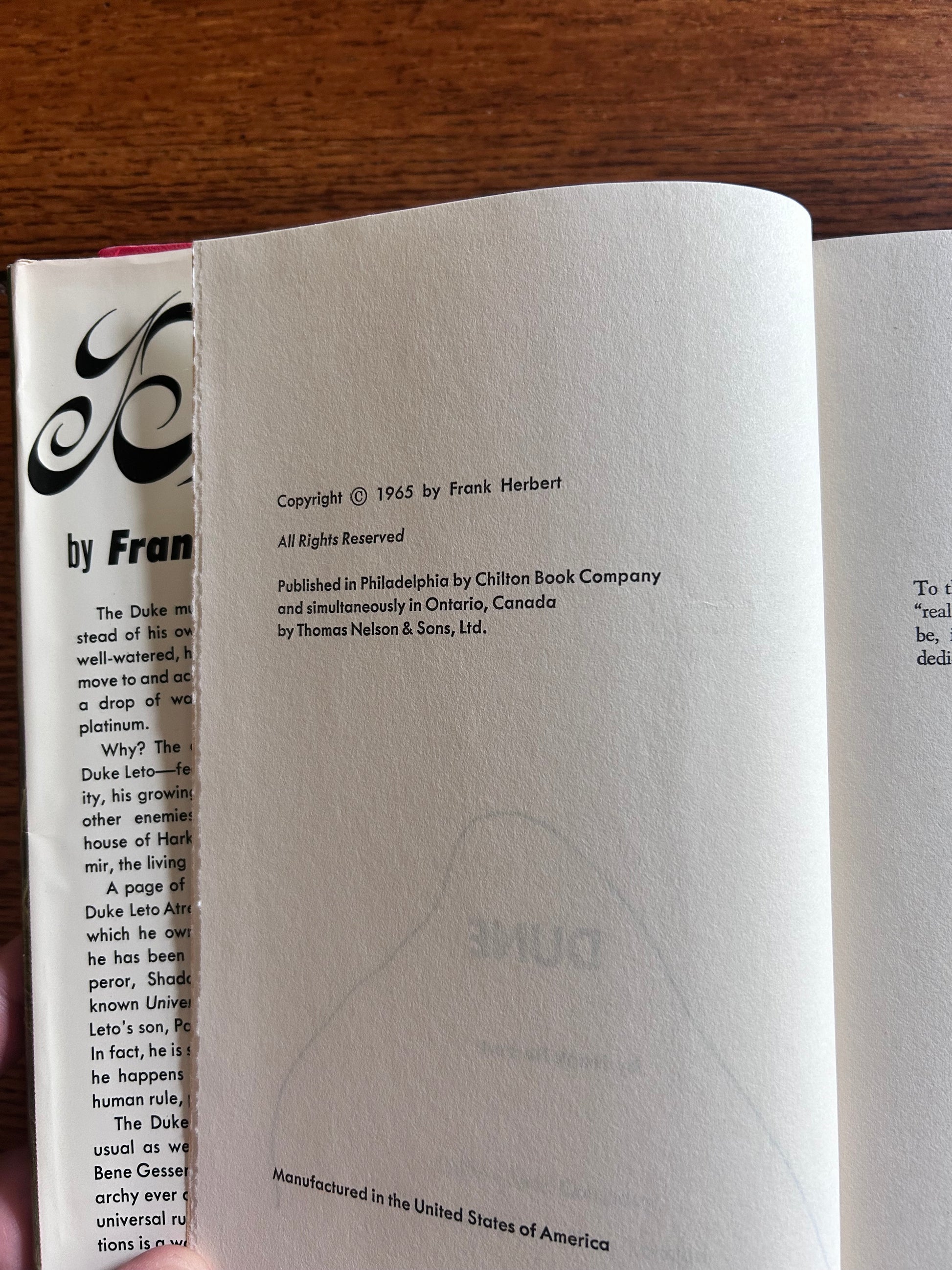 Dune by Frank Herbert – 1965 First Edition Book Club w/ Dust Jacket